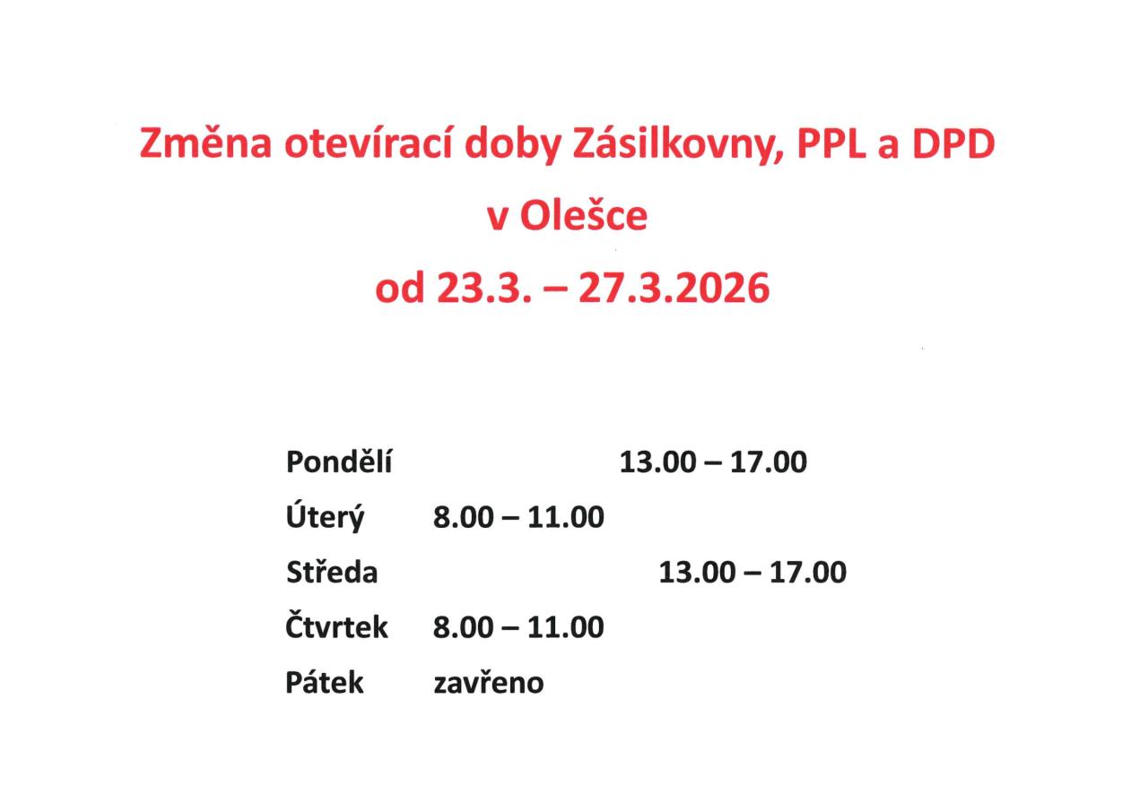 Změna otevírací doby Zásilkovny, PPL a DPD od 23.3. - 27.3.2026