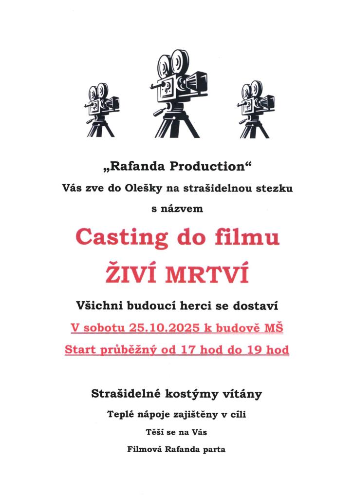 3. ročník strašidelné stezky - Casting do filmu ŽIVÍ MRTVÍ - Oleška 25.10.2025